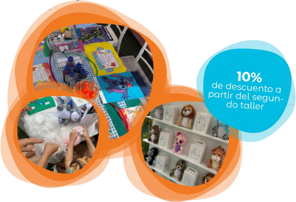 Dales papel, pegamento y purpurina y ¡que empiece la magia! Con nuestros talleres de manualidades, cada niño se lleva a casa una obra de arte y la satisfacción de decir: “¡Lo hice yo!”. Pura creatividad en acción.